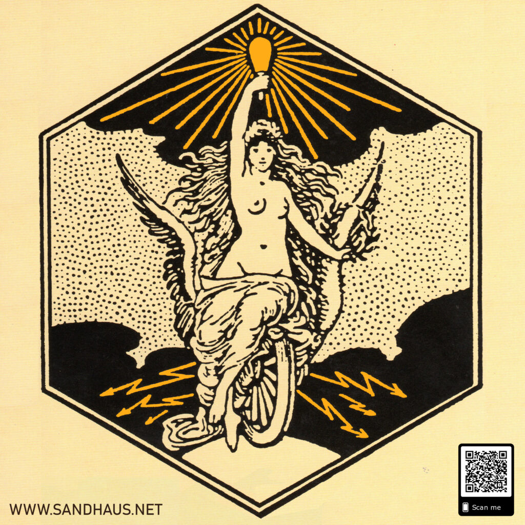 Sie steht in der Tradition des berühmten Signets der AEG von 1888. Dieses stellt die “Göttin des Lichts” dar, die lässig auf dem geflügelten Rad des Fortschritts ins Bild schwebt. Ihre dynamische Pose ist nicht ganz ausbalanciert. Sie scheint noch, in Bewegung zu sein und sich gerade erst zum Betrachter hin gedreht zu haben. Kurvenreich und sinnlich beschwingt – ihre Haarpracht wie unter Strom – erhellt sie die Nacht. Ihr Heilsversprechen ist die Erleuchtung in Form des elektrischen Lichtes. Die Botschaft dieser Allegorie ist eindeutig: Elektrizität und Licht sind von nun an eine untrennbare Einheit und gleichzusetzen mit Fortschritt.