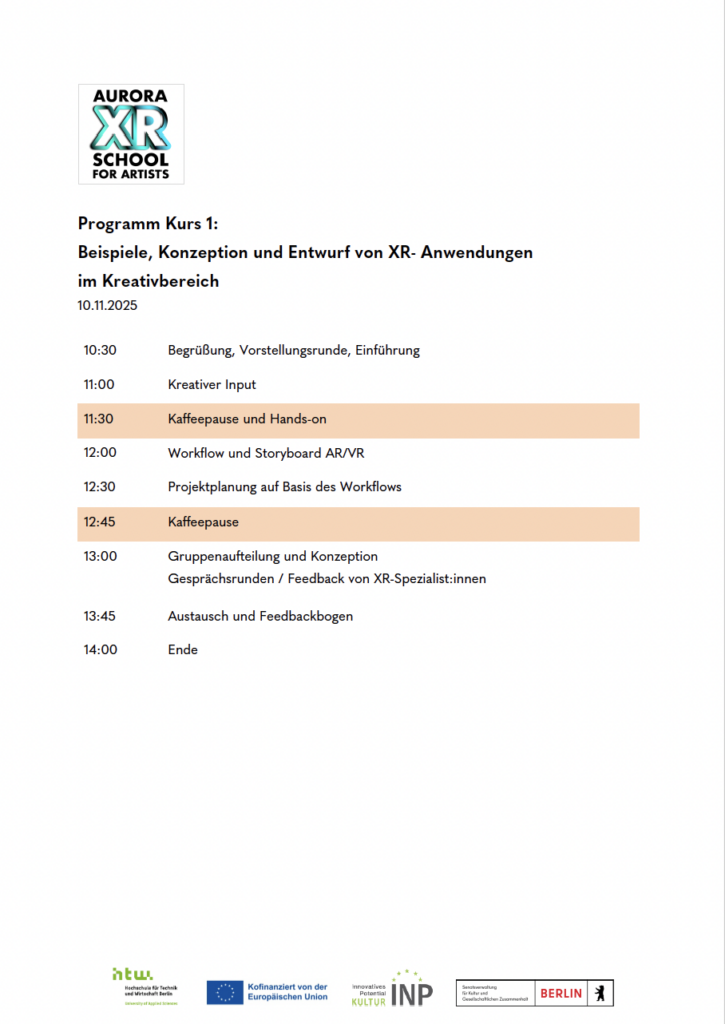 In the practical part, you will develop your own idea for a small XR project and discuss it with the other participants as well as with the AURORA XR experts.