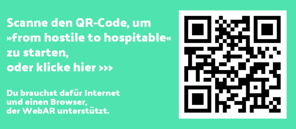 In Kollaboration mit den interdisziplinären AR-Spezialist:innen der AURORA XR School for Artists an der HTW Berlin entwickelte Martin Binder eine mobile WebAR-Anwendung, um auf hostile Design im Berliner Stadtraum aufmerksam zu machen und Informationen bereitzustellen. Dafür wurden zunächst gezielt Orte im Berliner Stadtgebiet ausgewählt, die von diskriminierender Gestaltung geprägt sind. Mithilfe der AR-Technologie wurden alternative Gegenentwürfe in Form von 3D-Modellen ausgearbeitet, die im Verhältnis zu der vorhandenen Gestaltung als utopische Antithese fungieren.