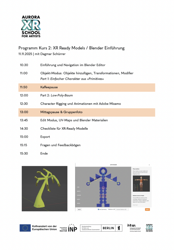 Nachdem du dich in den XR Tutorials und im ersten Kurs mit den Grundlagen von Extended Reality beschäftigt hast, lernst du in diesem Online-Kurs die ersten Schritte zur Erstellung digitaler 3D-Modelle in Blender, die du später in deine XR-Anwendung einfließen lassen kannst. Du lernst die Arbeitsoberfläche des Open-Source-Programms kennen, modellierst erste Objekte, belegst sie mit Materialien und Texturen und erhältst eine Einführung in die grundlegenden Animationstechniken.
